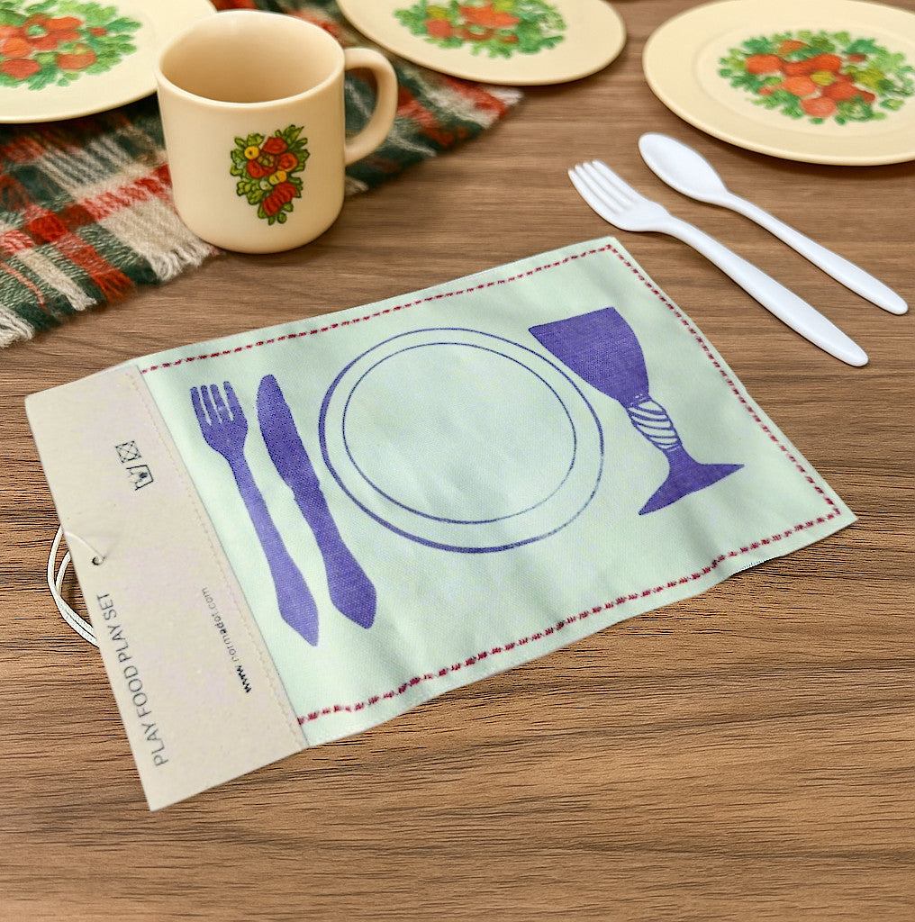 Serve up farm-to-table fun! This handcrafted play-food set is sewn in Denmark from plant-based, silkscreen-printed cotton canvas and velvety fabric, bringing a rainbow of veggies—and a soft pita flatbread—to any pretend kitchen.