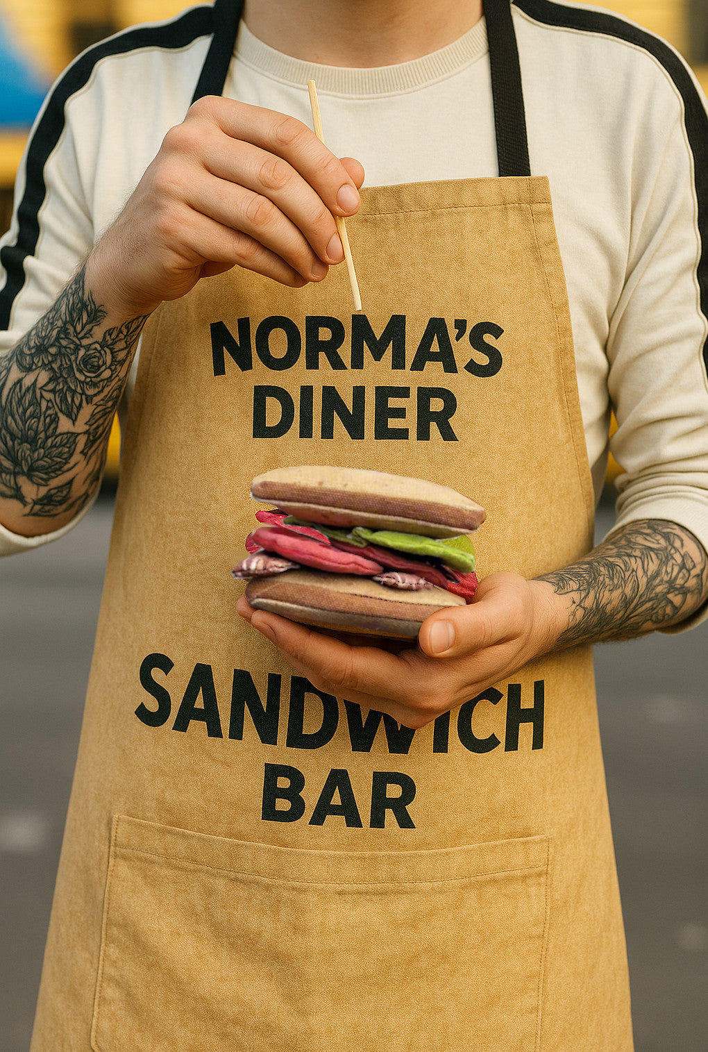 Bring café charm to playtime with this beautifully handmade BLT sandwich plush toy — ideal for play kitchens, pretend picnics, or eco-friendly gifts! Designed and crafted in Denmark, this set includes playful, soft food items, thoughtfully made with partly upcycled materials. It’s packaged in a recyclable paper bag with a clear window and finished with a hand-printed banderole made from upcycled cotton.